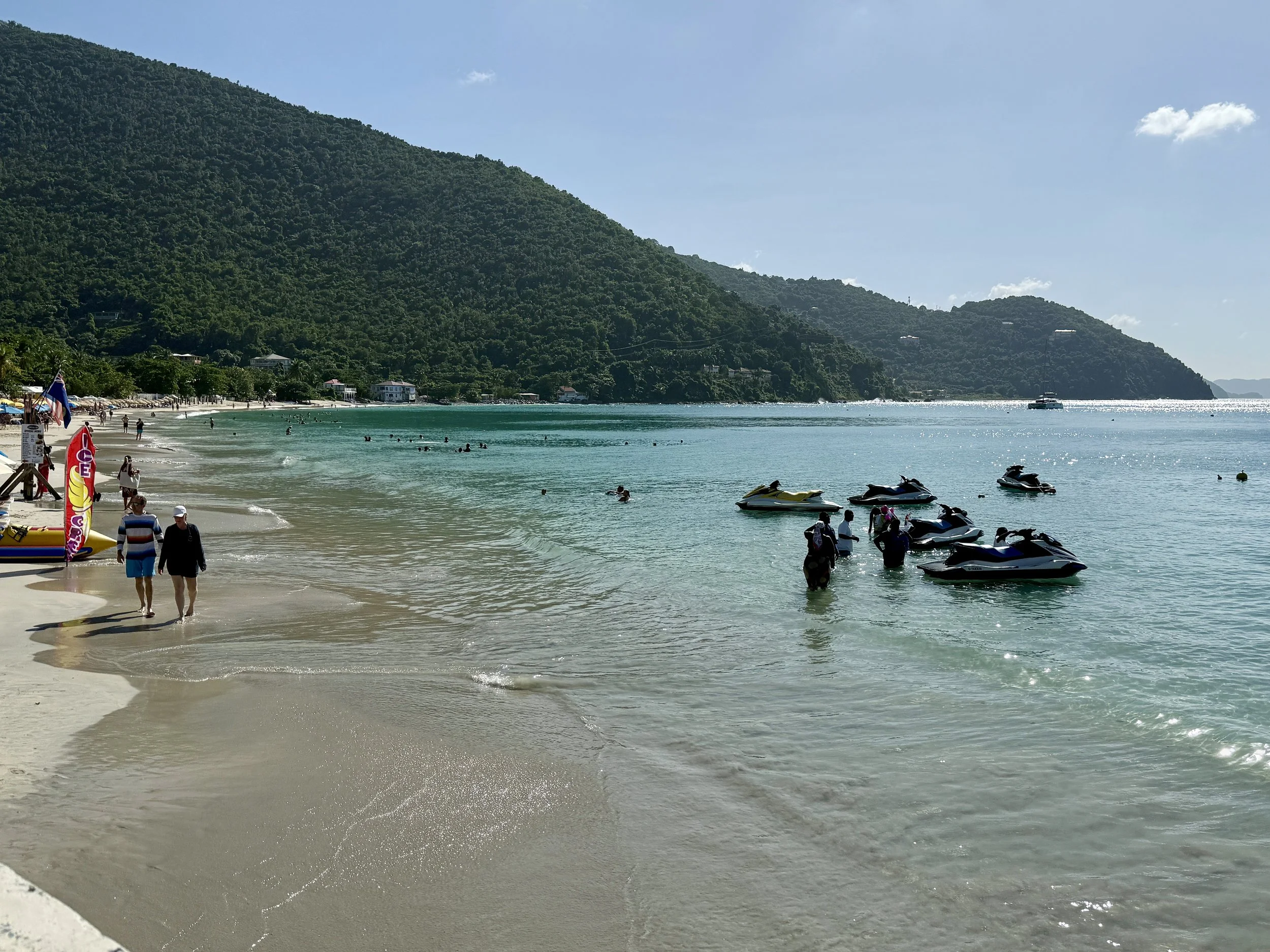 And for those who want more than a spin around the bay, the family offers a guided tour over to Jost Van Dyke. You follow an experienced rider along the coastline, past hidden coves and stretches of open sea, until you reach the famous White Bay — a place where the colour of the water looks so unreal it feels painted.